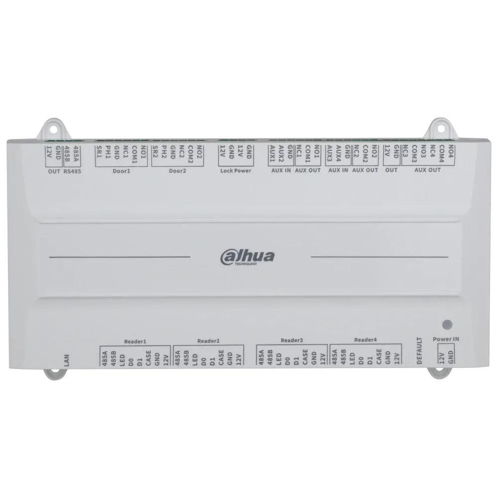 Контролер доступу на 2 двері;5x - RS-485, 4х - Wiegand, 4х - тривога вхід/вихід, 2х - кнопка виходу, 2х - статус дверей, 2х - контроль замка;Пам'ять: користувачів 100000, відбитків 3000, карт 100000, подій 500000;Функції: сигналізація розкриття картридера, сигналізація вторгнення, сигналізація тайм-ауту дверного датчика, сигналізація незаконної карти та примусу;DC 12В, PoE